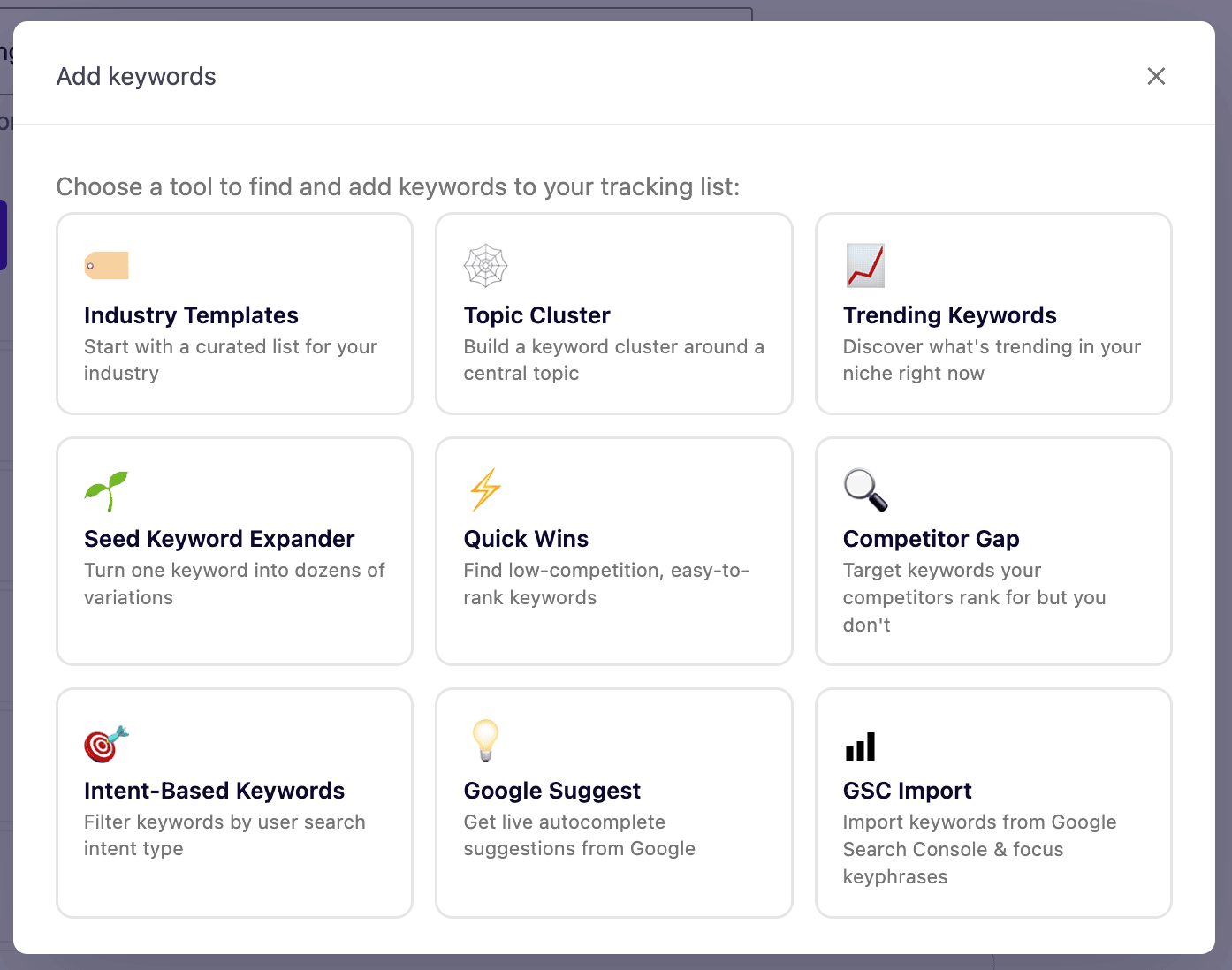 Les utilisateurs ont souvent du mal à trouver des mots clés, et surtout les bons, à suivre via SEOPress Insights. Notre nouvel assistant d’ajout de mot clé va grandement vous aider dans cette tâche.