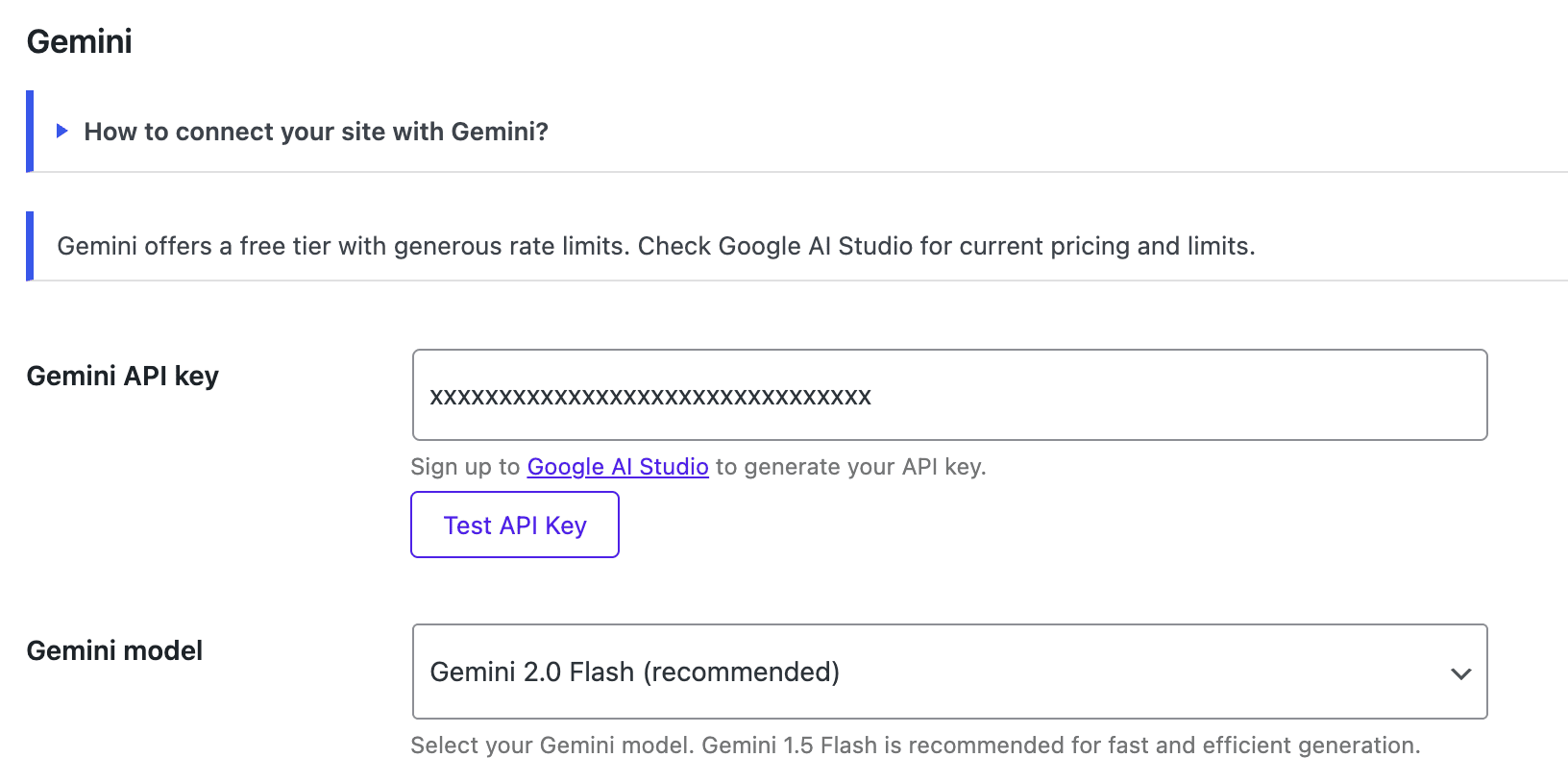 Collez la clé dans le champ Gemini AI.