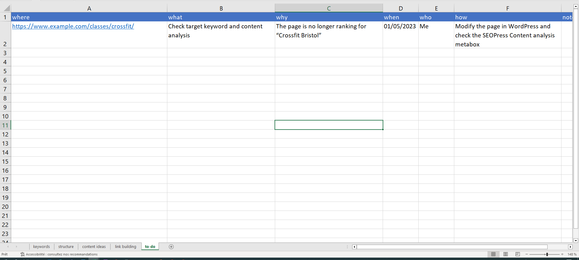 Setting up a spreadsheet to track SEO work