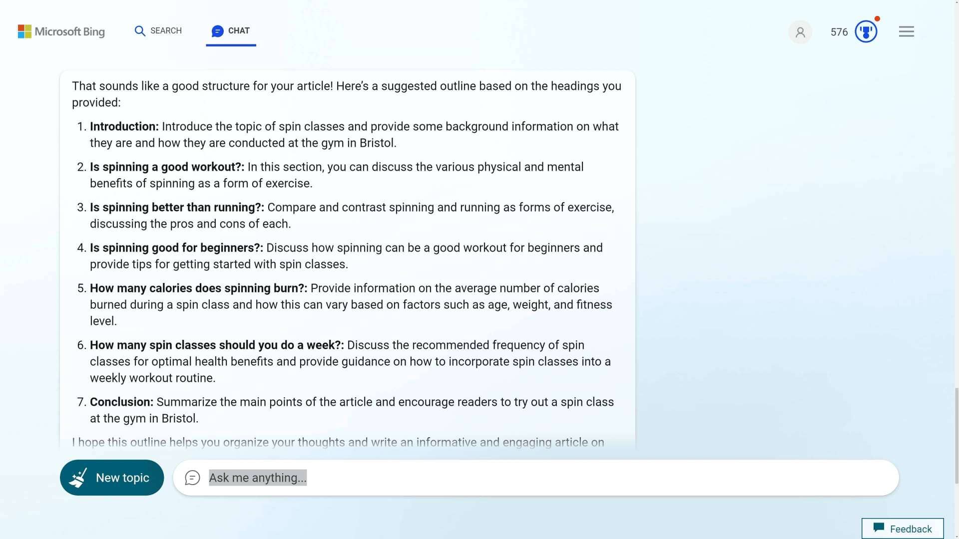 The question has been answered by posts such as What are the benefits of spinning? An expert spin class instructor explains all… on Cosmopolitan.com or by 8 Reasons Why You Should Give Spin Class a Try on Bicycling.com. Both these 1000-word articles are ranking well on Google.co.uk for searchers Bristol (and the rest of the UK) at the time of writing.