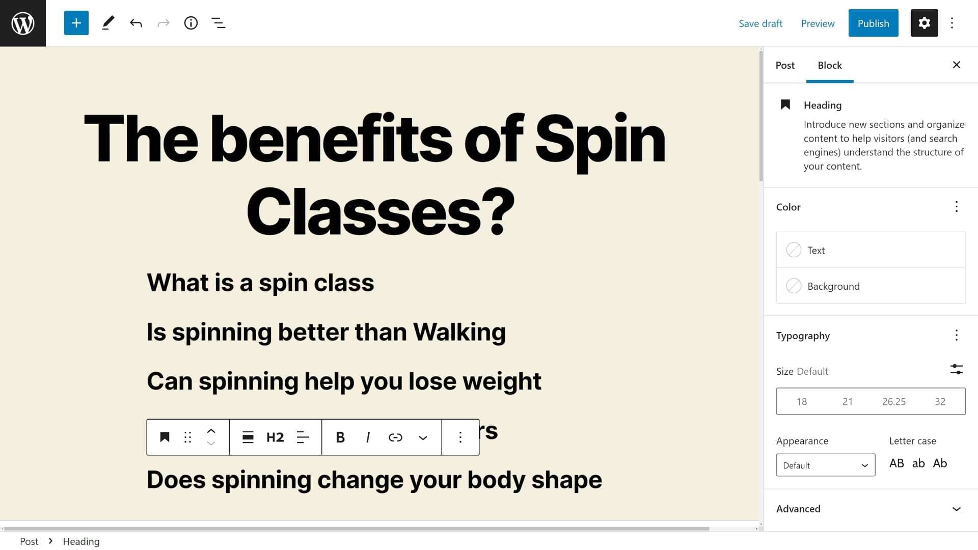 While you are doing keyword research, bear in mind that some questions asked in Google may merit a whole article to themselves. The keyword “What are the benefits of spin classes” is a good example of this.