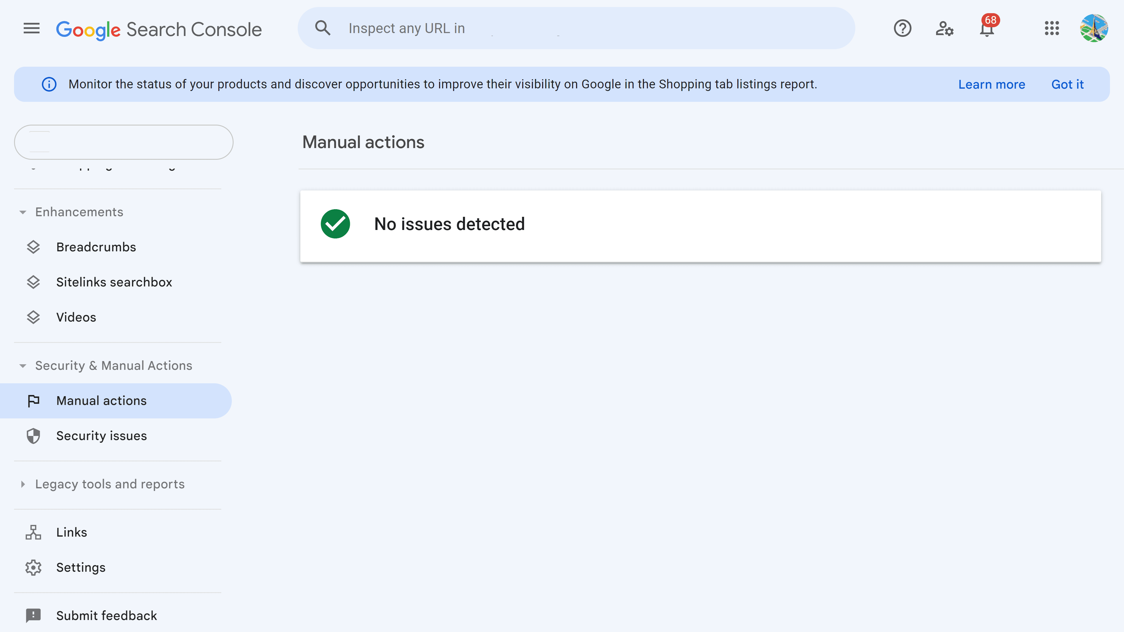 - There are no manual actions against your site in Google Search Console,